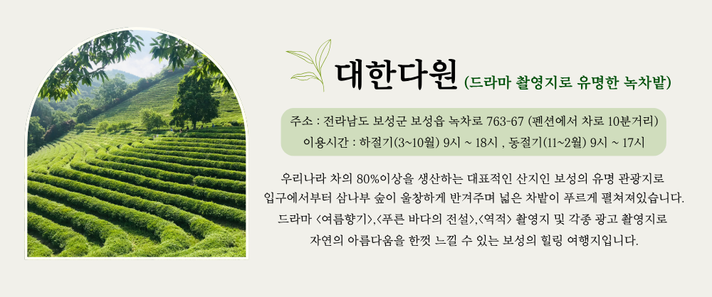 도로명 주소 : 전라남도 보성군 웅치면 대산길 8